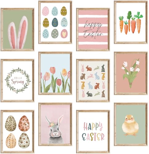 • FYSUIMU 12Pcs Easter Wall Art Prints Boho Bunny Egg Carrot Chick Art Poster Pastel Spring Wall Decor for Gallery Living Room Bedroom Unframed 8 x 10 Inch