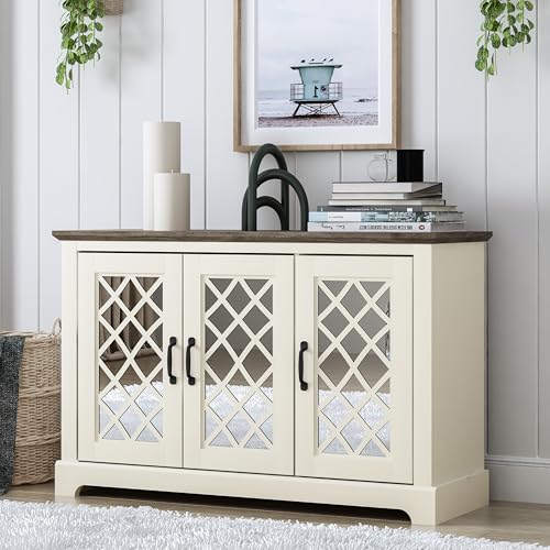 Elegant Acrylic Mirror Doors: This buffet cabinet features 3 acrylic mirror doors that serve as a decorative element, making it a stylish addition to any room.