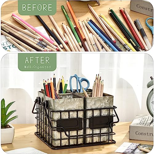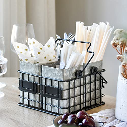 【vintage design】Get the very best vintage charm with this classic farmhouse look flatware caddy.It is made of galvanized steel which provides it a rustic metal design that complements any style of décor.