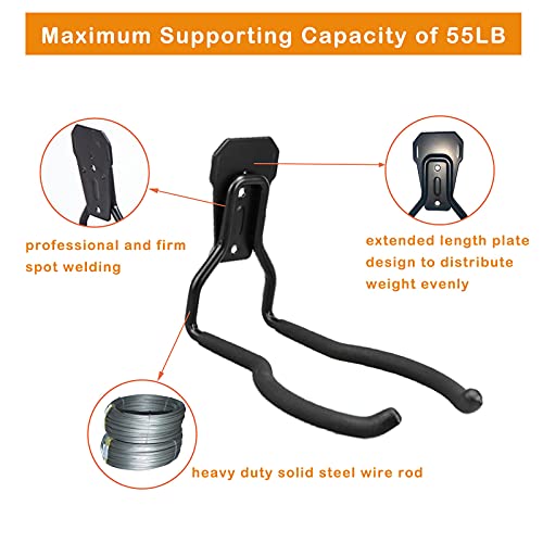 Quality Weed Eater Hanger: Made of heavy duty solid steel with supporting capacity of 55 LB maximally. Double crossbars with soft anti-slip PVC coating, your tools won’t be scratched or fall off. Body with black spray remedy painting, which is rustproof and wearproof