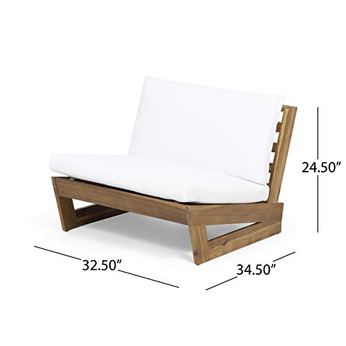 GDFStudio Outdoor Acacia Wood Club Chairs with Cushions (Set of 2), and White