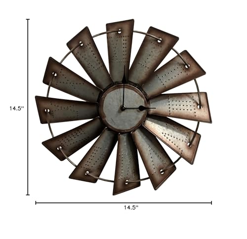 Rustic Farmhouse Design: This wall clock features distressed metal blades with stamped Roman numerals, giving it an antique vintage look that enhances rustic and farmhouse décor.