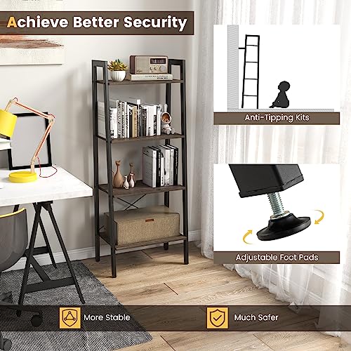 〖Industrial Style Design〗: The trapezoidal design makes this 4 tiers ladder shelf will not easy to shake which ensuring its stability. The metal x-type structure at the back of the base greatly improves the stability of the shelf. The four feet with adjustment pads can be adjusted according to the ground situation to maintain the stability of the shelf and prevent the ground from scratching.