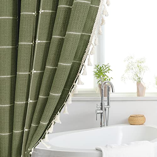 WARM TIPS – The shower curtain can repel water partly. If you wish to have a higher level of waterproofing, it is suggested to make use of with a shower curtain liner. Measures 72″ Width x 72″ Length (the length includes the tassels)
