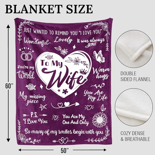 LOVE MESSAGE: Embrace your wife in both comfort and love with this beautifully designed blanket. Whether it’s her Birthday, your Anniversary, Christmas, Valentines, Easter, Thanksgiving, New year, or Mother’s Day, this lovingly crafted gift will melt her heart.