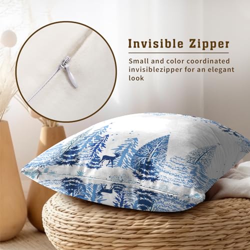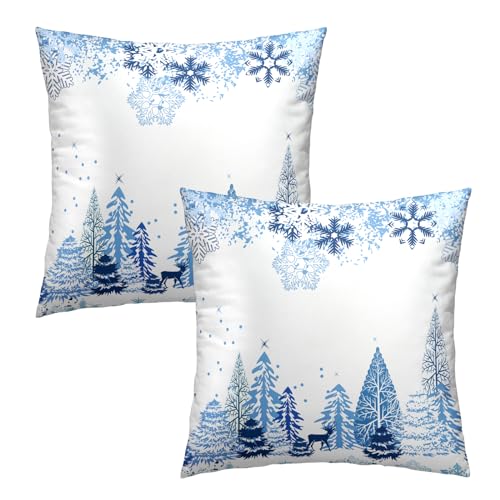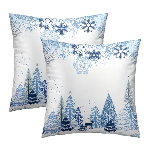 Giwawa Set of 2 Christmas Snowflake Pillow Covers Blue Deer Holiday Decorative Cotton Throw Pillow Cover Winter Cushion Case for Home Sofa Square 18 inches