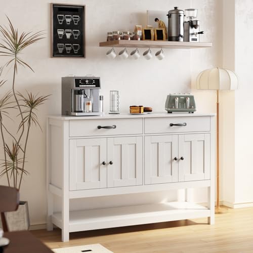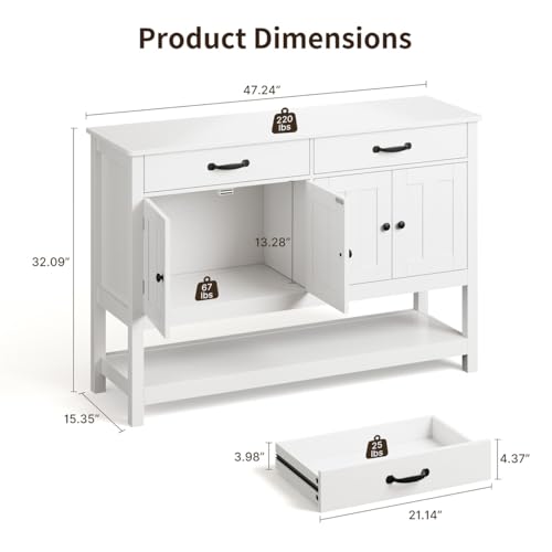 Stable and Durable: This storage cabinet is mainly made of MDF, well-made, and the durable paint coated on the surface extends the service life of this sideboard even more. The flat cut surface and sturdy four supporting legs greatly strengthen the stability of this sideboard and protect the stored items