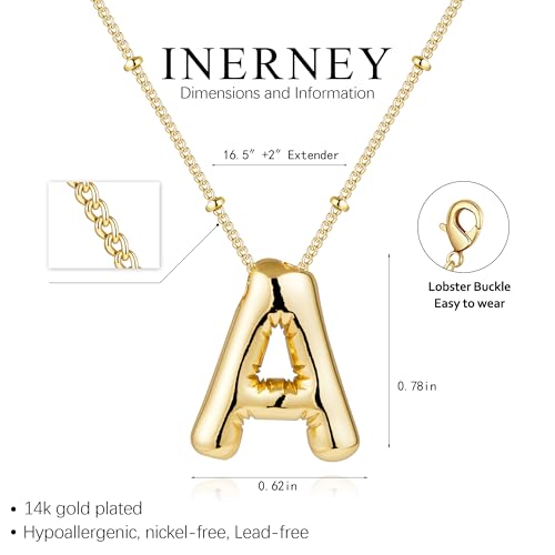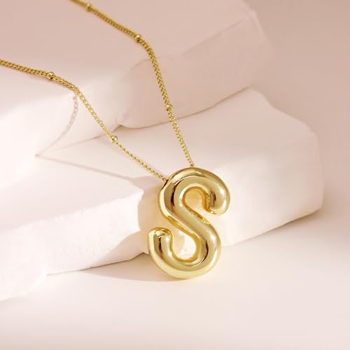 Gold Bubble Letter Necklace for Women, Dainty 14K Plated Balloon Initial Pendant Necklace Trendy Charm Non Tarnish Name Necklace Chunky Letter Necklace for Women Jewelry Gifts