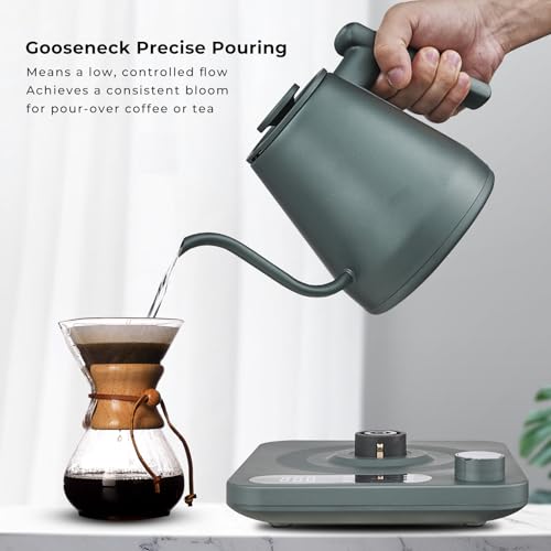 Gooseneck Electric Kettle, Custom Temperature Keep an eye on,1200 W Fast Boil & 2H Auto Keep Warm, Real-time Temp Display, Precise Pouring, Pour Over Coffee Kettle & Tea Kettle, Stainlee Steel,Green