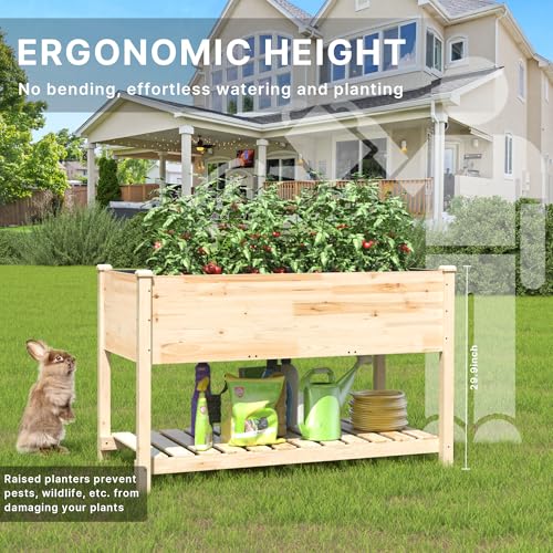 RATIONAL DESIGN: The elevated design not only protects the wood from direct contact with the soil, but also reduces weed growth and discourages animal invasion. The ergonomic height avoids the wish to bend or kneel. Upright shape reduces the pressure on legs, knees, neck and shoulders. Makes planting easy for you.