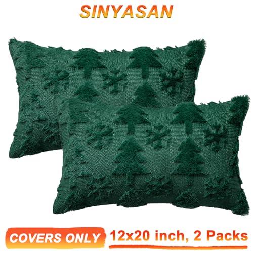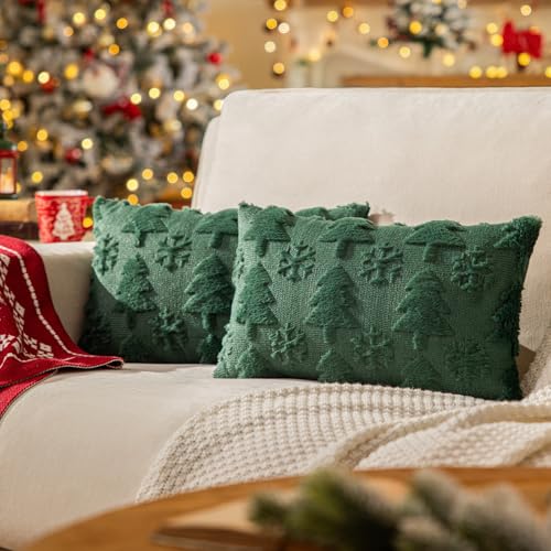 • Green Christmas Tree Throw Pillow Covers 12×20 Set of 2 Winter Snowflake Decorative Pillow Covers Soft Plush Embroidery Cushion Covers Holiday Accent Pillows for Couch Farmhouse Home Decor