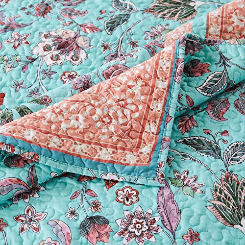 Add a chic boho vibe for your bedroom with the Audrey quilt set. This pieced bedding set features stylized jacobean fern and floral prints in turquoise and coral tones for an exotic, tropical feel and look. In every single place jacobean print on reverse. Zipper along the side of each and every sham holds your pillow in place and makes each and every sham reversible, taking into consideration more than one looks for your bed. Oversized for better coverage on lately’s deeper mattresses. Machine quilted with fabric bound edges for durability and surface interest. Quilt set comes with quilt and two pillow shams (one sham per Twin set). Dimensions: Twin set includes one 68×88-inch quilt and one 20×26-inch pillow sham; Full/Queen set includes one 90×90-inch quilt and two usual 20×26-inch pillow shams; King set includes one 105×95-inch quilt and two 20×36-inch pillow shams. (All dimensions +/- 2 inches.) Quilt and shams are 100% microfiber polyester face and back with cotton Wealthy fill (60% cotton, 40% polyester), prewashed with extra softener for extra softness and comfort. Machine Wash.