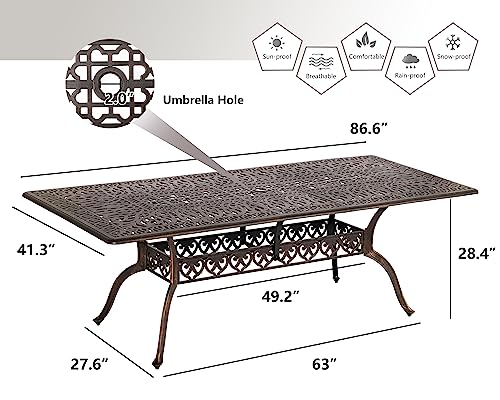 Grepatio Patio Dining Table – Outdoor Cast Aluminum Large Rectangular Table Weather-Resistant Table with 2″ Umbrella Hole, People Party Lawn Backyard Garden Bronze, Blak 86.6″(L) x 59″(W) x 28.4″(H)