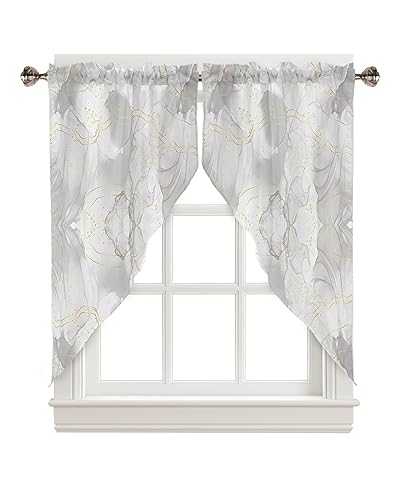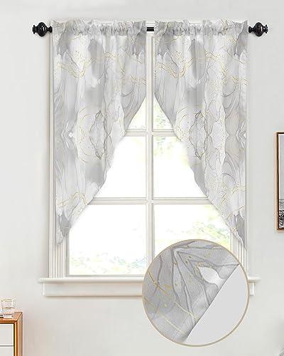 Standard Size: Each package includes 2 panels of marble texture swag curtains, with each panel measuring 36 inches in width and 63 inches in length. Constructed with a 2″ header and 3″ rod pocket, it easily fits most standard curtain rods. Installation is a breeze.