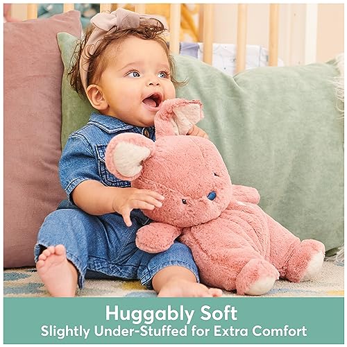 BUNNY PLUSH FOR BABIES: This understuffed, pleasantly floppy bunny rabbit is made from premium pink plush with baby-protected embroidered accents. Quilted textures on its body, feet and eats promote tactile play and mimic the feel of a security blanket.