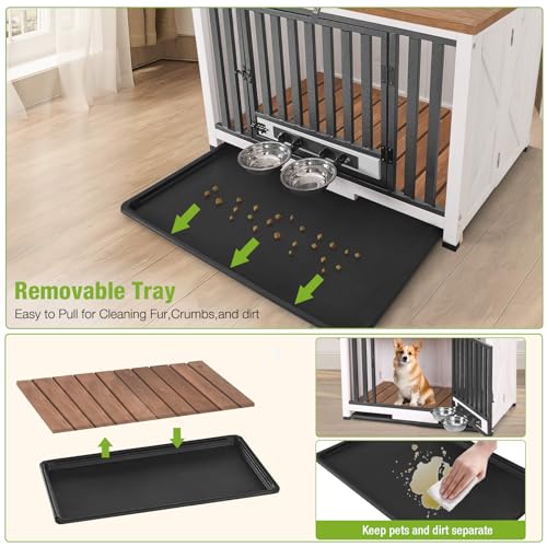 Pull-Out Tray: Indoor dog kennel with a convenient pull-out tray for simple cleaning and maintenance, keeping your pet’s living space hygienic and tidy.