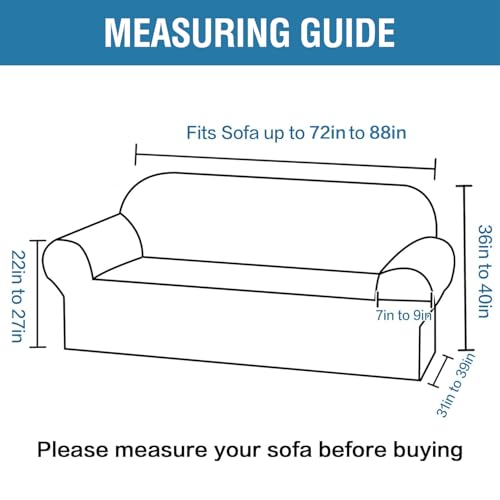 GREAT FIT: This 1 Piece style sofa couch cover a couple of sizes to make a choice: Armchair-Standard(30″- 40″); Armchair-Oversized(46″- 53″);Loveseat (58″- 70″); Sofa (72″- 88″); XL Sofa (89″- 103″).Detailed measurement please refer to size picture. You should definitely measure the sofa before purchase.