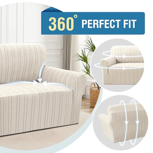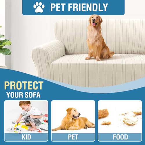 MODERN STRIPE DESIGN: Our unique thicker jacquard stripe design sofa covers look more elegant than some other couch covers with small checks, makes your sofa look different,simplicity and fashion.Save you money by extending the life of your sofa, turn all eyes to the splash of color for you to enliven any space with a youthful glow