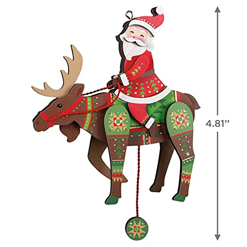 Inspired by classic jumping jack toys, this picket pull-string Christmas tree ornament combines undying charm and brand new trends in your holiday decor. Rustic patterns add festive detail to the delightful design that includes Santa riding a moose. Give the string a gradual tug to peer the mighty animal move its legs.