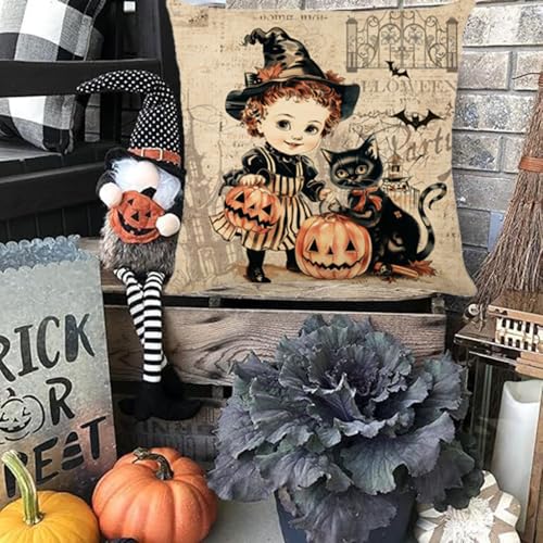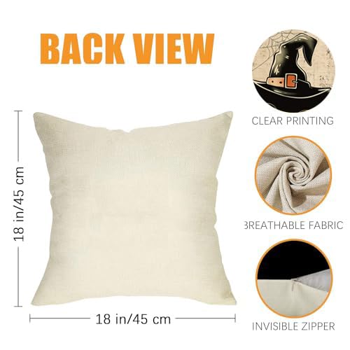 Halloween Pillow Covers 18×18 Set of 4 Trick or Treat Ornamental Pillow Covers witch motif Decoration Indoor/Outside Pillowcases Linen Fall Home Decor Cushion Case for Sofa