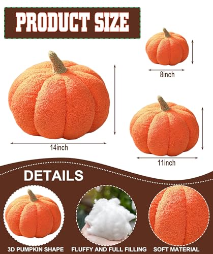 【Cute & Easy to Clean】The Halloween Pumpkin Plush is designed with bright orange and green melon vines, looks like a real pumpkin, very vivid. The pumpkin plush surface is made of washable material, which is easy to clean and will not fade. It may be washed by hand or by washing machine.