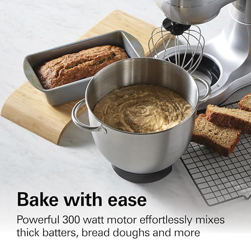 BAKE WITH EASE: Effortlessly mix thick batters and doughs for bread, cookies and more. With a powerful 300 watt motor, this Hamilton Beach stand mixer will easily care for the ingredients for all of your homemade baked goods from cupcakes and cookies to bread.