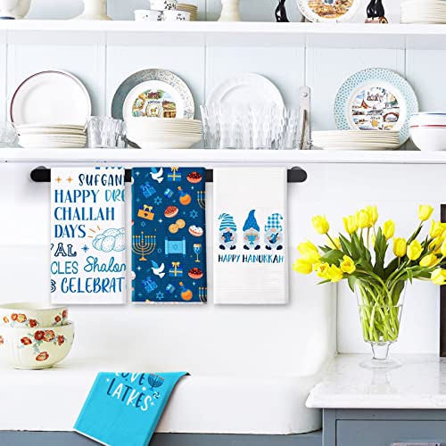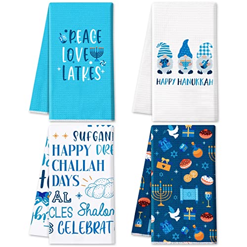 GREAT HANUKKAH KITCHEN DECOR – These Hanukkah kitchen towels with unique designs will brighten up your day. These versatile towels are a fun addition to your kitchen décor, ideal for on a regular basis use, and make excellent holiday or housewarming gifts for your friends or family. Suitable to be used as dish towel, kitchen towel, hand towel, bathroom towel, and decorative tea towel.