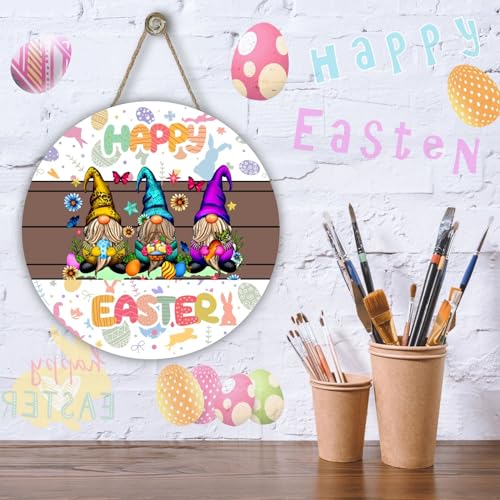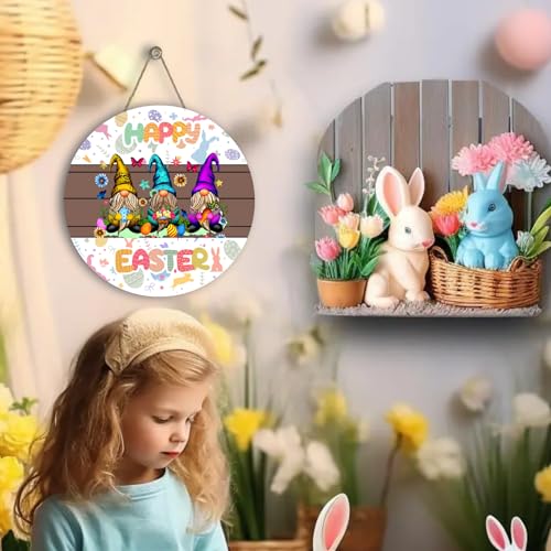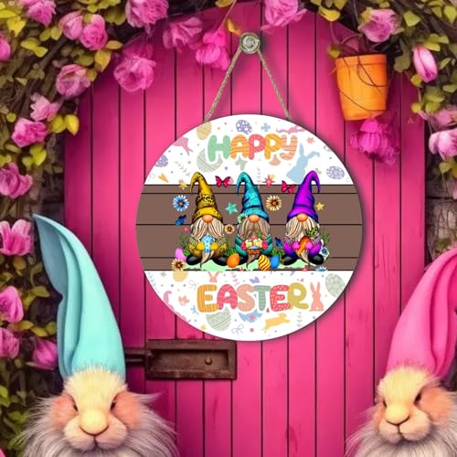 ✔️〖 Wonderful Gift 〗 The Happy Easter Themed Easter Bunny Gnomes Wooden Sign is A fancy gift for your relatives, neighbors, friends, teachers and so forth, to give them your best wishes and blessings, and can be utilized as the housewarming gift. Suitable for Easter, spring holiday and other special occasions.