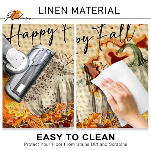 Attractive Unique Design: The fall harvest non-skid doormat top used to be printed with pumpkin patch, maple leaves, red berries patterns and the words of “happy fall “. Not only is it a beautiful and creative way to decorate your home, but it also brings you a deeply cheerful Thanksgiving atmosphere