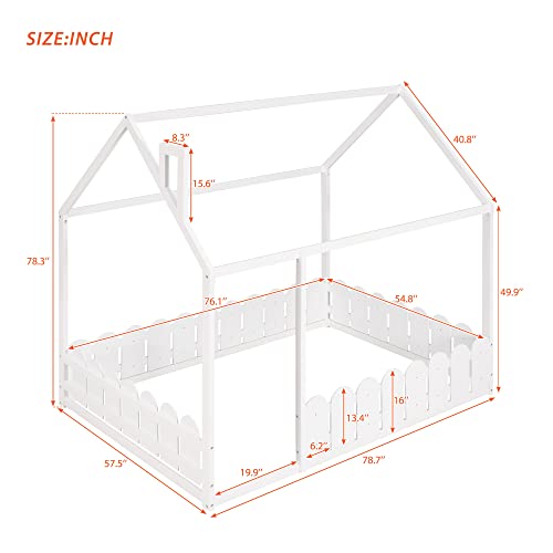 Easy to Assemble: Overall house bed dimension: 78.”L x 56.4″W x 68.6″H. This wood house bed will come in 1 packages with clear instructions and hardware so one can guide you though all steps