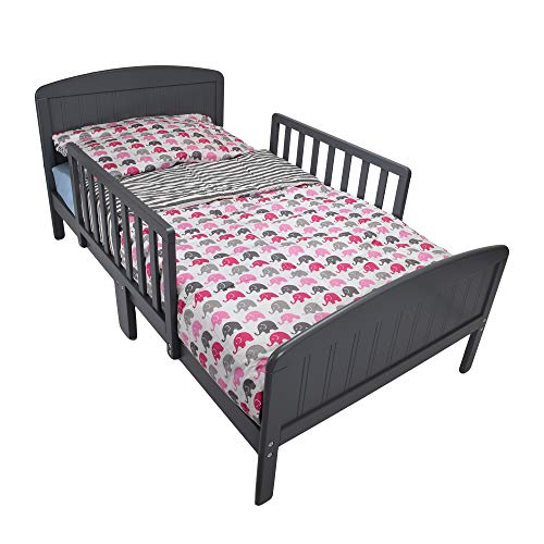 Protected Toddler Bed: Bed for kids features 2 center-mount guard rails that help provide a Protected sleeping space for little ones and a sense of security for parents and caregivers