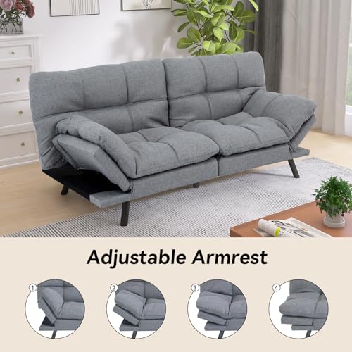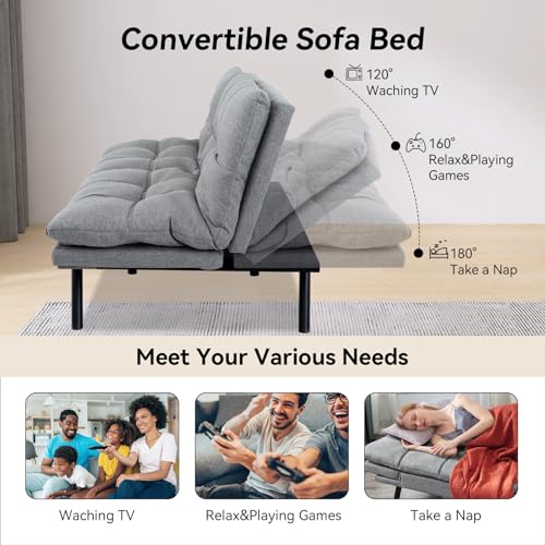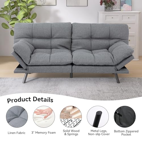 【HIGH QUALITY MATERIALS】: Our sofa bed is filled with 2.5″ memory foam and supportive cotton padding, which is soft and non-collapsing, and can distribute pressure to support your sleeping comfort. Premium linen fabric is soft to the touch and not easy to deteriorate, the classic and stylish grey color makes the sofa blend perfectly with your living room, you are going to enjoy a comfortable experience for future years.