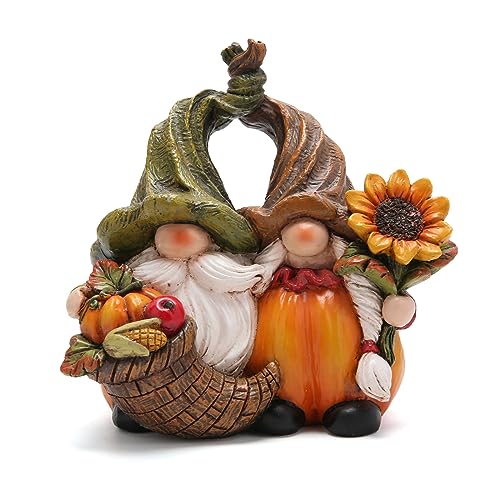 š Heartwarming Thanksgiving Couple: Celebrate the season of gratitude with our Resin Pumpkin Gnome Couple. These adorable gnomes embrace, donning pumpkin stem-shaped hats that intertwine on the tips. Crafted in the shape of pumpkins, their bodies exude festive charm.The male gnome lovingly holds a cornucopia basket filled with pumpkins, corn, and applesāa true representation of harvest abundance. Meanwhile, the female gnome clutches a sunflower, radiating the warmth of autumn.