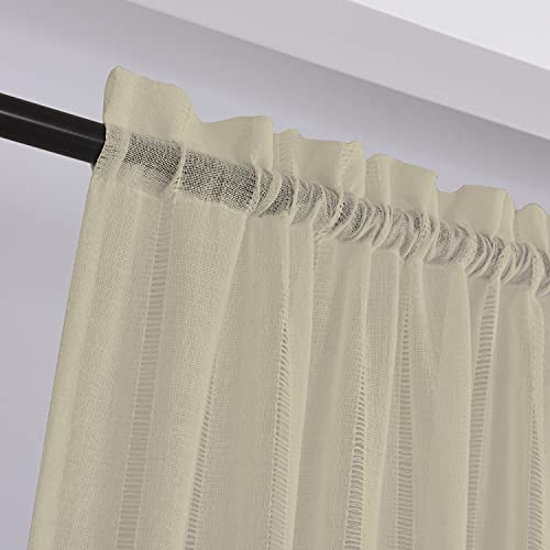 READY MADE: 2 panels per package, each and every Striped Sheer Door Curtains measures 54″wide, 40″ long. All sizes panels have 2″ rod pocket opening for simple hanging and use on decorative rods. 2 free matching tie backs as bonus included.