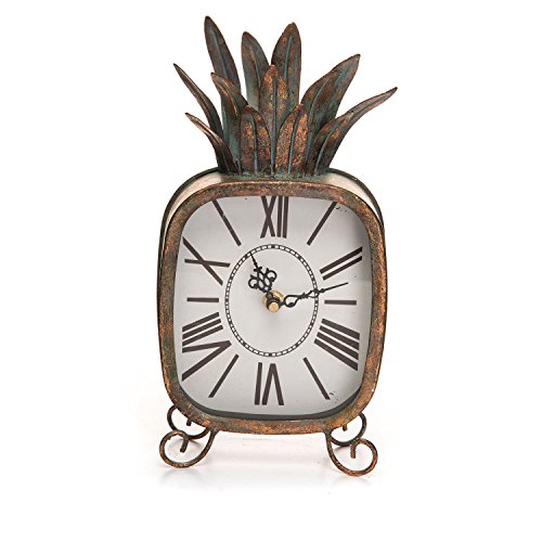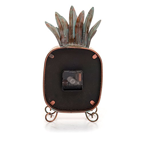 Style: This metal clock includes a distressed copper patina finish in the shape of a pineapple. With It is rustic charm, this clock will fit wonderfully with your favorite décor on your desk or table.