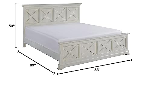 Whether outfitting the main bedroom or making a guest room feel like a guest suite, nothing finishes a room like this Homestyles Seaside Lodge King Bed Frame. Fully finished from the headboard to the footboard, it the off-white finish brings a coastal feel into any bedroom. It fits any same old king mattress, and supports it with European taste slats.