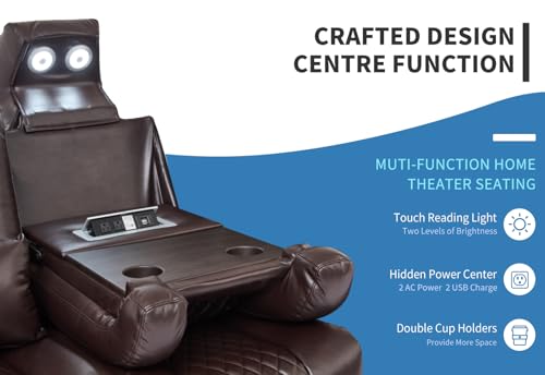 HOME THEATER SEATING: A long day after all comes home to you and you need a movie? Or a relaxing game time? Or simply a moment of relaxation and rest? Whatever it is, our home theater seating are perfect for you. 7 colors of light to adjust your atmosphere, Touch-adjustable reading light, Center drop down console, Fold-down table, Lumbar Pillow, Power recline and USB charging stations and so much more, You’ll easily enjoy your family time with the movie theater chairs