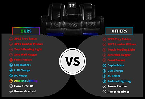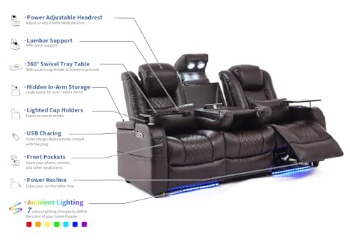 Home Theater Seating Seats, Movie Theater Chairs Theater Recliner with 7 Colors Ambient Lighting, Lumbar Pillow, Touch Reading Lights, Tray Table