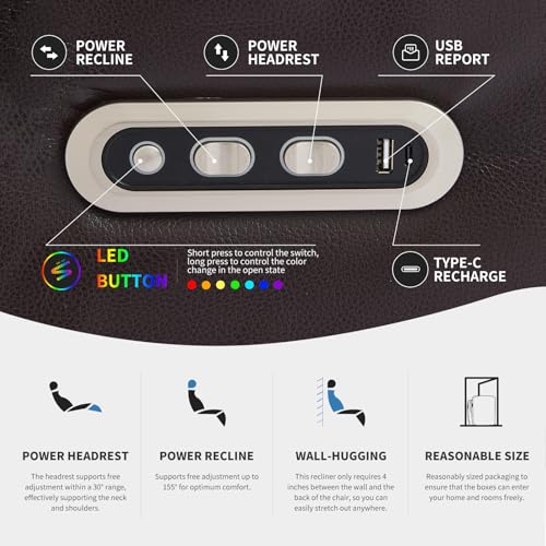 WELL-DESIGNED CONTROL CENTER: Unlike other moive theater chairs, we designed the regulate center on the outside of the armrests so that you do not block your movement when you connect the usb charging. Through it, You’ll all the time adjust your headrest, recliner, light switch and color change. usb port and Type-c port can meet the majority of conventional devices charging. Maximize functionality and convenience