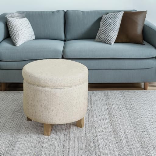 STORAGE OTTOMAN: Created with premium soft and durable woven fabric our Round Ottoman with Storage offers a timeless style | Perfectly completed with tapered solid wood flared legs