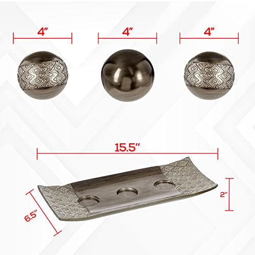 PREMIUM QUALITY: These decorative Tray and Orb Balls are made of premium quality resin material that gives the decorative balls an upscale feel & superior durability. We’ve used top-quality resin that feels impressively heavy, doesn’t have the fragility of other decorative balls, and remains in great condition for future years without the need for constant maintenance.