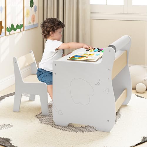 More than one Use for More than a few Settings: Perfectly sized for toddlers, this children activity table and chair set offers a dedicated space for learning, drawing, playing, or eating. Its stylish design features adorable elephant patterns that seamlessly complements any playroom or nursery, making it both functional and attractive.