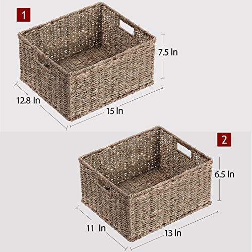 Natural and Sustainable: these storage baskets for shelves are made of naturally grown seagrass in a woven pattern, the material is natural and friendly to the environment.