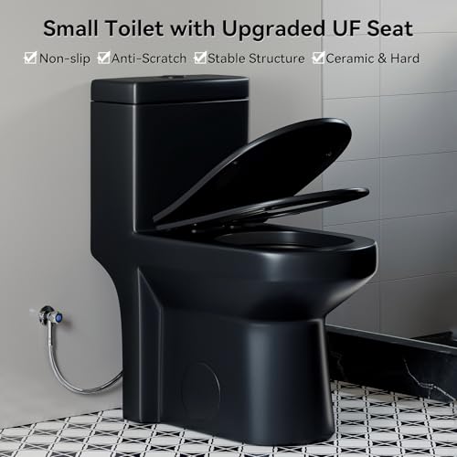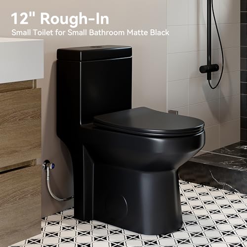 Matte Black Toilets: The elegant design with a matte black color will make your bathroom more modern. This space-saving toilet measures 25 inches deep by 13.4 inches wide and 28.4 inches high, ensuring quite a lot of room for comfort in a small space. Great for apartments, small bathrooms, ensuite bathrooms, and more.