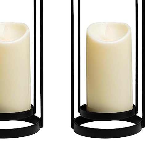 HPC Decor 15.5in Candle Sconces Wall Decor Set of 2- Black Metal Candle Sconces with LED Candles & Hooks- Handmade Wall Decorations for Home Decor, Living Room, Dining Room, Bedroom, Bathroom
