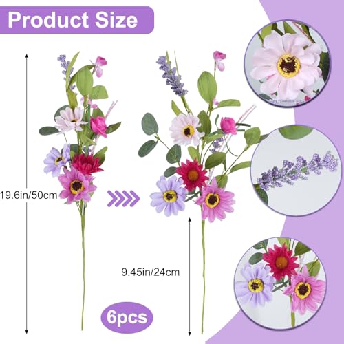 Package Includes – Our fake silk spring flowers faux wildflowers floral arrangements contain 6pcs silk flower picks, 20 Inches