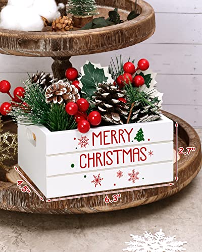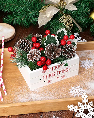 QUALITY MATERIALS – The wooden crate is made of sturdy wood material and is printed with vivid colors. The Christmas flowers are made of pine cones, foam red berries, and silk leaves, plastic branches. This adorable wood crate with faux greeneries is perfect for accenting your table display or tiered trays for the season!