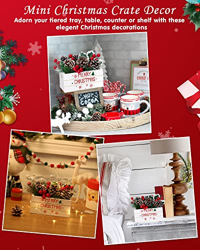 GREAT CHRISTMAS DECOR – This adorable mini wooden crate display with Red Berries, Pine Picks, Pine Needles, Holly Leaves, Pinecones, and LED Lights (with the exception of batteries) might be an ideal addition to your Christmas decor in your tiered tray, mantle, table, shelf or adorns your kitchens, bathrooms, and table settings. This mini crate set gives your holiday decor a touch of rustic style and might be a great farmhouse decorative piece for your sweet home.