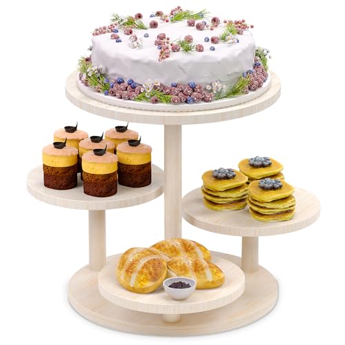 Cake and Cupcake Stand Combo:Our wooden cake stand draws inspiration from the graceful form of a flower. The lower three tiers emulate the delicate petals and leaves of a blossom, even as the top tier replicates the bloom itself. Unlike traditional cake stand, our 4 tier cupcake stand presents your cakes in a unique, elegant, and noble floral arrangement, adding a touch of sophistication to any occasion.