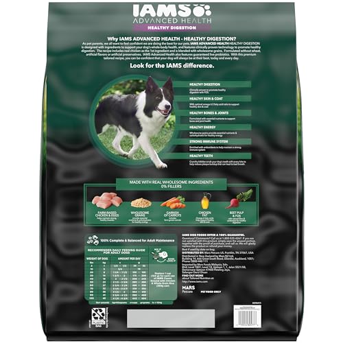 36 lb. Bag: Contains one (1) 36 lb. bag of IAMS ADVANCED HEALTH Healthy Digestion Adult Dry Dog Food with Real Chicken
